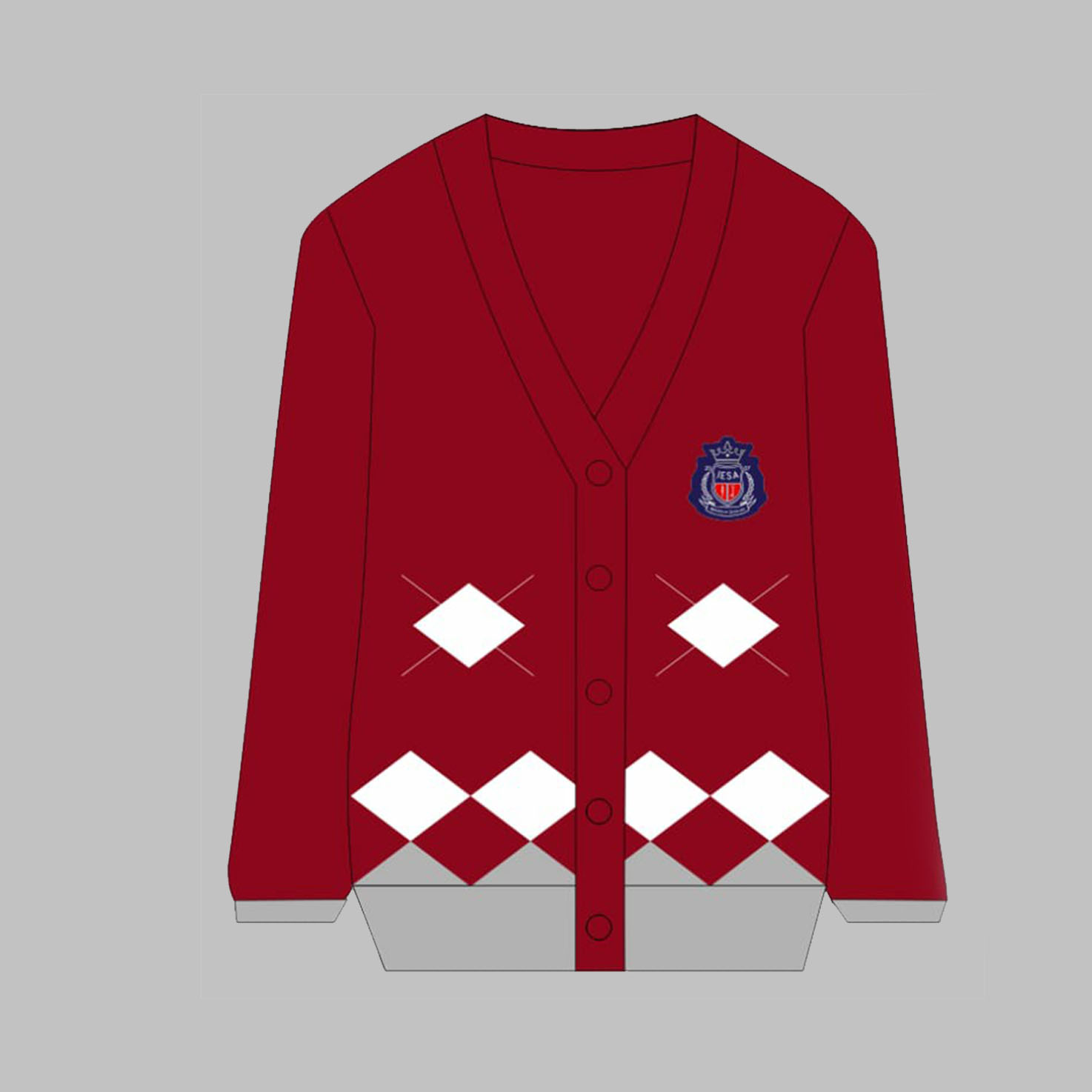 Red White Blade collar Short sleeve White sleeve edge White placket with Two/Three hidden button White-embroidered school logo on the left side of the chest
